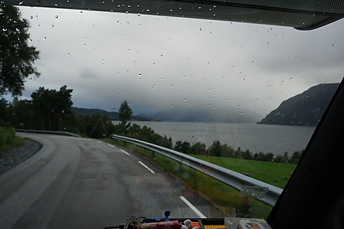 Wir verlassen Tusseløypa und fahren Richtung Kristiansund – morgen soll ein Badetag sein: im Hallenbad natürlich! Hier steigen die Temperaturen gerade kaum noch über 15°C. Außerdem herrscht hier Aprilwetter.