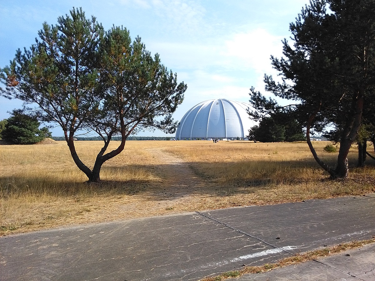 Freitag kurz nach Mittag ist unser Krempel im Womo und die Kinder sind aus der Kita geholt. Es geht verhältnismäßig gut nordwärts, trotz der übermäßig vielen Baustellen. Die Cargolifterhalle ist von der Autobahn kaum zu übersehen. Bevor wir uns dort genauer umsehen, geht es erstmal zum Campingplatz: über die alten Landebahnen des Ex-Militärflugplatzes.Immer mit Blick auf die Halle.