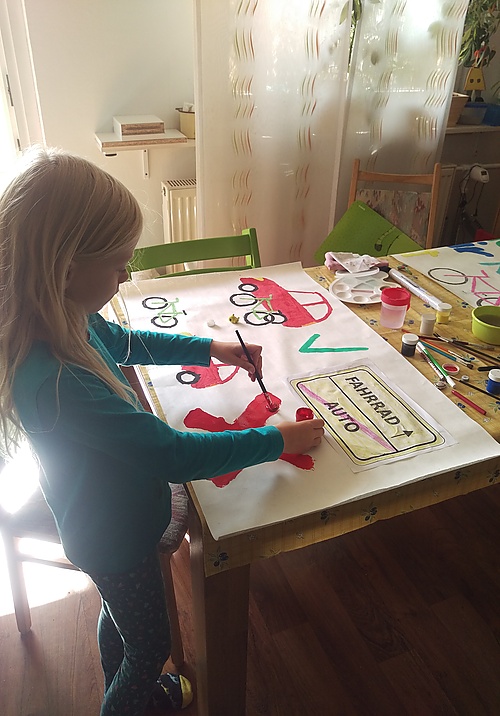 Nun war der Bundesweite Aktionstag Kidical Mass. In Dresden war unter anderem vom ADFC für den heutigen Sonntag Nachmittag zur Demo aufgerufen. Bei so einem schönen Wetter kann man doch mal eine kleine Fahrradtour mit seinen Kindern unternehmen. Davor gilt es die Plakate zu malen.
