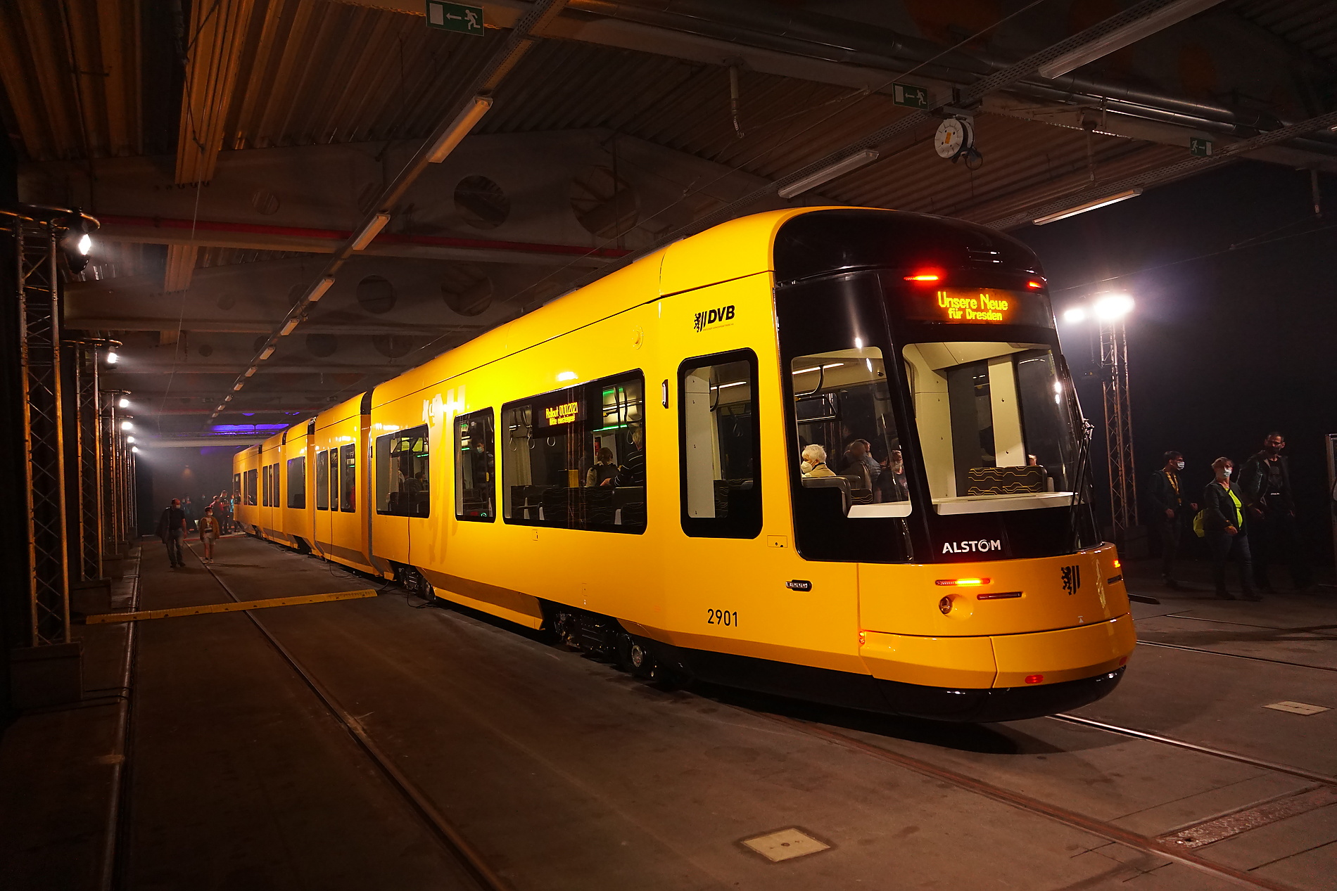 Für die Begrüßung der ersten Neuen veranstaltet die DVB eine relativ aufwendige Show mit fast schon Volksfestcharakter am Straßenbahn-Betriebshof in Gorbitz. Corona ist natürlich allgegenwärtig.